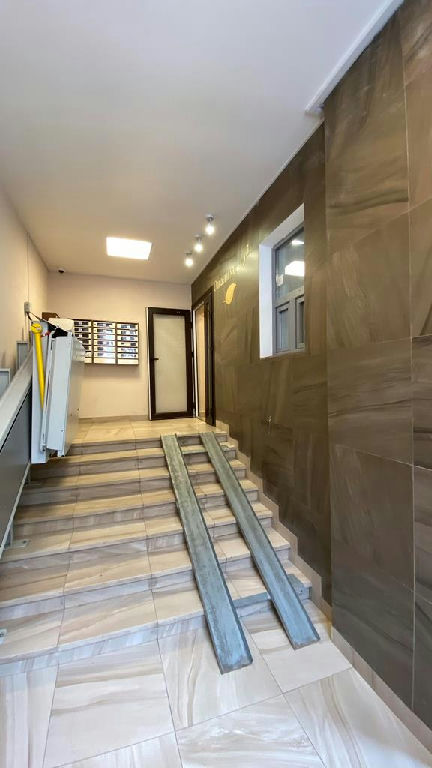 Чиcтый, современный подъезд, с регулярной уборкой. Есть домофон. Современный грузо - пассажирский лифт.