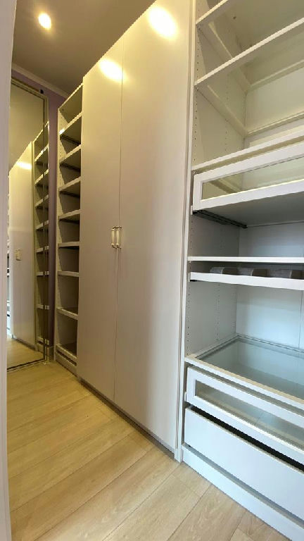Для хранения личных вещей и одежды в спальне предусмотрена гардеробная комната, с удобной, практичной меблировкой.